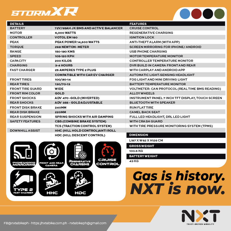 The Storm X didn’t enter the market quietly. It arrived as NXT’s statement piece—an electric ADV built not just to exist alongside gas-powered machines, but to challenge expectations. With long range, solid highway capability, and a confident riding stance, Storm X proved that electric adventure motorcycles can be practical, exciting, and daily-usable in Philippine conditions.
